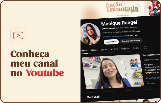 Criadora da Nação Encantada por Feltro, sou artista apaixonada por moldes, cores e pelo universo mágico que transforma feltro em personagens cheios de vida. Minha missão é mostrar que qualquer pessoa, mesmo sem experiência, pode aprender a criar bonecos encantadores, com acabamento profissional e alma artesanal, transformando moldes em arte, renda, autoestima e realização.